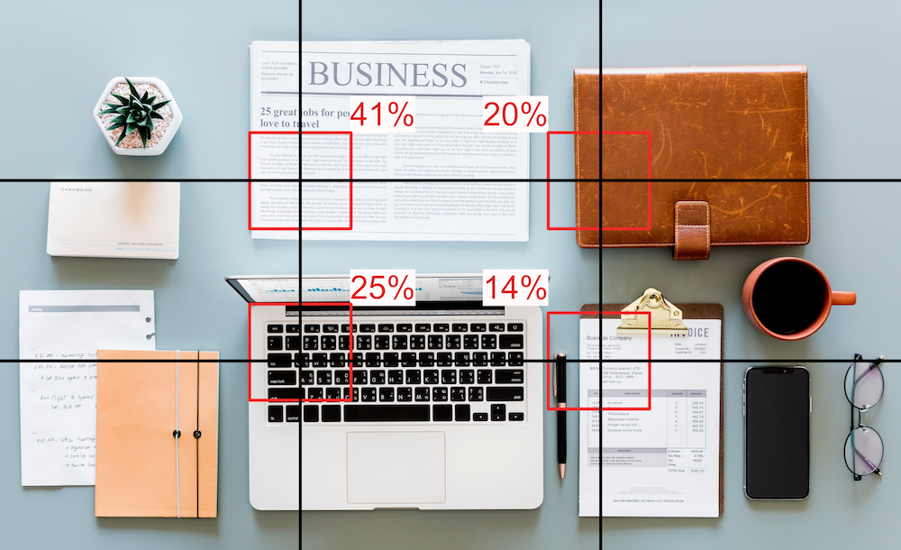 What draws your attention? Your answer would be a newspaper, a laptop, a notebook and so on. Now, look at the same image, but this time with grids: