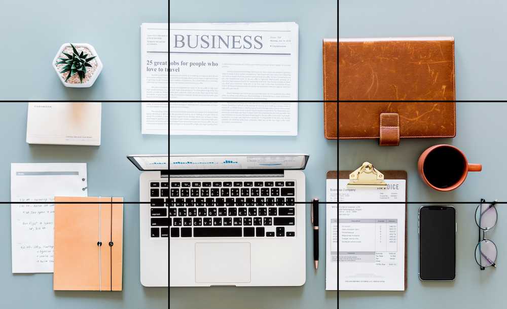 Can you see that the objects lie along the grid and all intersections lie on the important objects like the laptop, newspaper etc? This grid is not an ordinary grid, in fact, it’s called a rule: the rule of thirds.